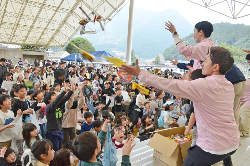 各種ステージや飲食出店などの催し「さくらまつり」が29日、新宮市の高田グリーンランド(GL)雲取温泉であった。さくらの会(林知恵利代表)の主催でこの時期の恒例、3回目を数える。市内外より親子連れなど多数が来場、ダンスの披露や軽食、菓子・餅まきなどを楽しんだ。